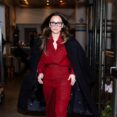 To the premiere of Ryan Murphy's JKF Jr. and Carolyn Bessette mini-series, in which she plays Jackie Kennedy.